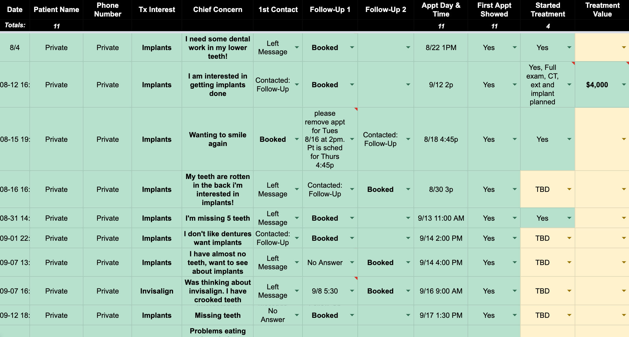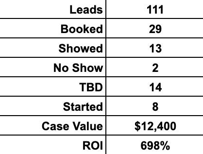 In this snapshot, 7 prospective implant patients were generated for $4/each, opportunities for thousands of dollars in production, on autopilot for your office, month after month.